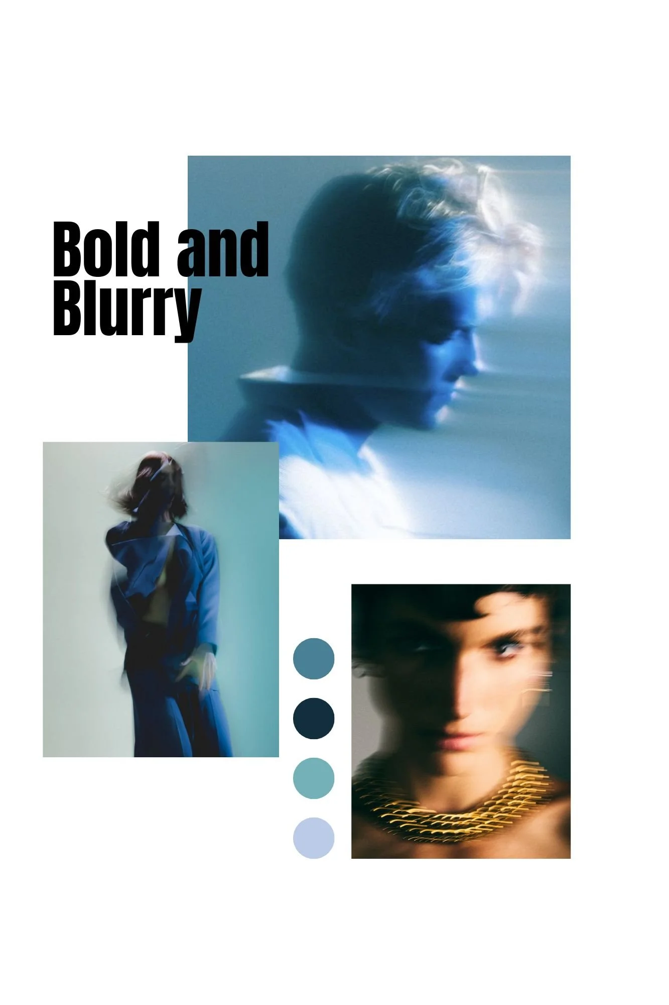 I developed a mood board and selected an experimental, moody aesthetic consistent with current fashion photography trends in 2023. Opting for a cold color palette, I aimed to complement the winter atmosphere.